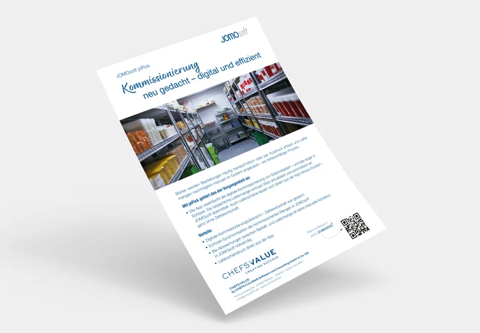 Mit JOMOsoft digital einkaufen, Warenannahme automatisieren und Speiseplanung optimieren – für weniger Papier, mehr Übersicht und effiziente Küchenprozesse.